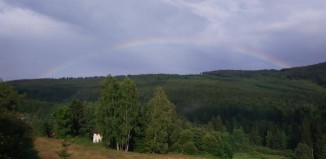 FOTO PRO DNEŠNÍ DEN: Duha nad Boubínem. V Kubově Huti v neděli k večeru fotil Zdeněk Mráz
