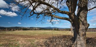 ŠUMAVA OBRAZEM: Výhled od osady Mísavy (Vyšný) na Boubínskou hornatinu s Bobíkem (vlevo) a Boubínem