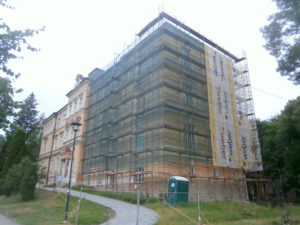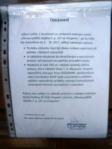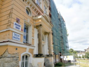 Zastavená rekonstrukce fasády základní školy ve vimperském parku. Zhotovitel odešel od rozdělané práce a zatím se na lešení stále nevrátil. Termín na dokončení má do půlky října letošního roku. Radnice zatím čeká, jak se situace vyvine.