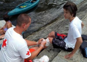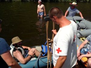 V roli zachránce se Martin Pöschl ocitá na několik hodin denně, kdy ve vodě s pomocí kotvy na laně chytá prázdné uplouvající lodě a pomáhá z vody zaskočeným vodákům, kteří se „cvakli“. „Velmi častá jsou vykloubená ramena, nechybí ale ani zlomeniny. Různá drobná tržně-zhmožděná poraněná o kameny v řece ošetřujeme na místě, v případě vážnějších úrazů poskytneme první pomoc a přivoláme záchranku. Nejdramatičtější byl letos zásah spojený s oživováním ženy, která vypadla z raftu a ztratila vědomí. Vše naštěstí skončilo dobře,“ podotkl Pöschl.