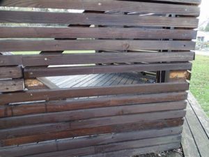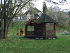 Vimperk – altán a jeho okolí na nábřeží Volyňky v městském parku.