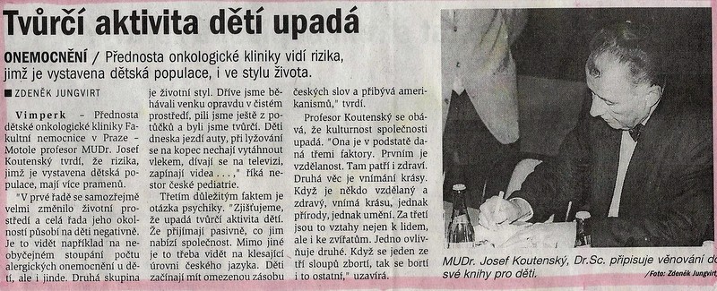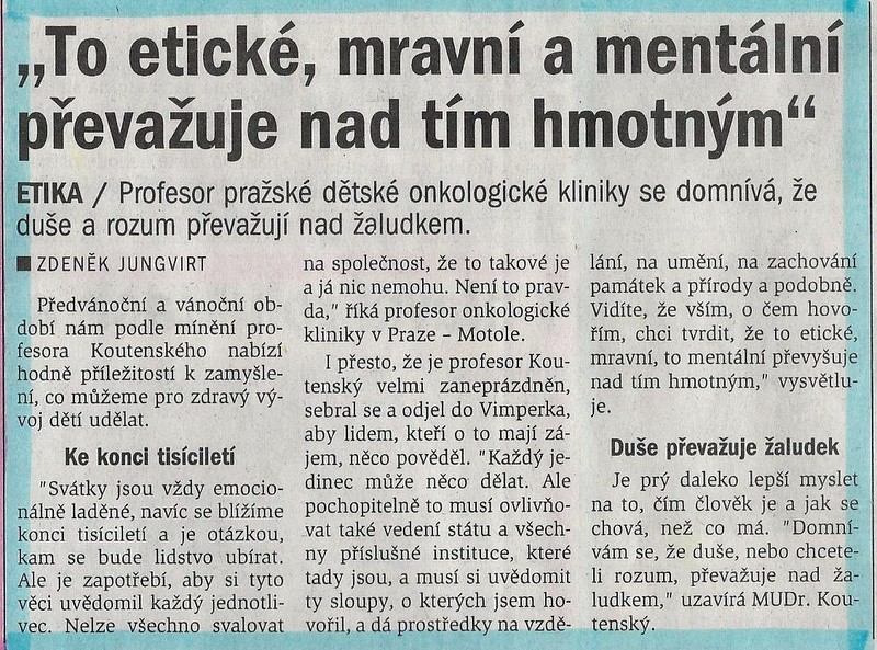 Psal se prosinec 1998 a do Vimperka přijel na besedu přednosta onkologické kliniky Fakultní nemocnice v Praze – Motole profesor MUDr. Josef Koutecký, Dr.Sc. Uznávaný odborník si v předvánočním období našel čas nejen pro přítomné vimperské občany, ale ochotně se podělil o své názory také se čtenáři Listů Prachaticka. A jak jinak, než převážně na dětské a předvánoční téma.