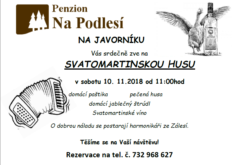 JAVORNÍK: Penzion Na Podlesí zve na svatomartinskou husu