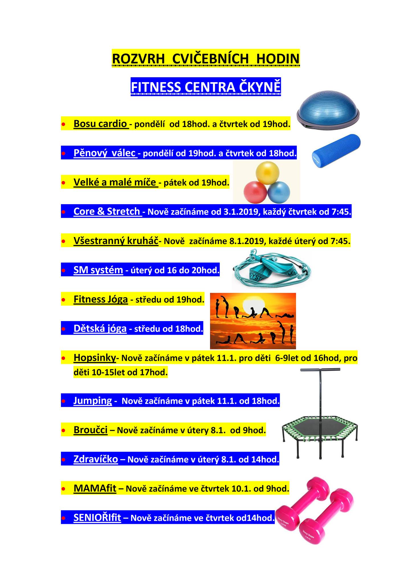 FITNES CENTRUM ČKYNĚ: Rozvrh cvičebních hodin