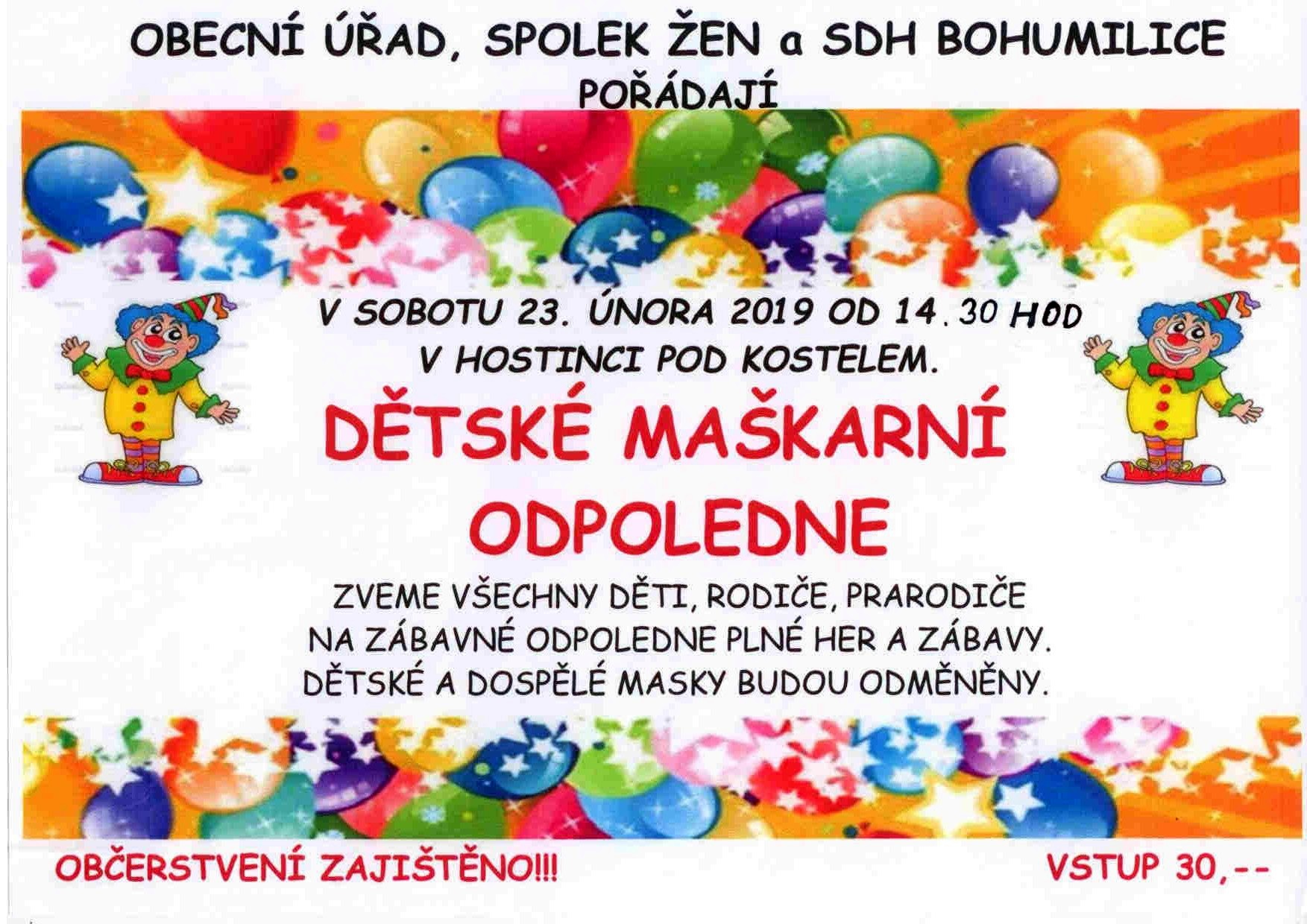 BOHUMILICE: Pozvánka na dětské maškarní odpoledne