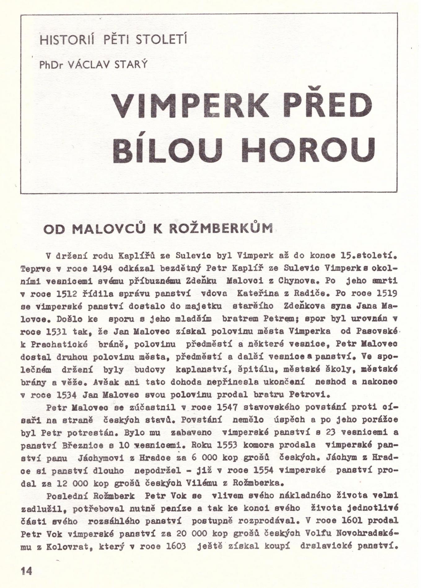 Z HISTORIE MĚSTA: Vimperk před Bílou horou