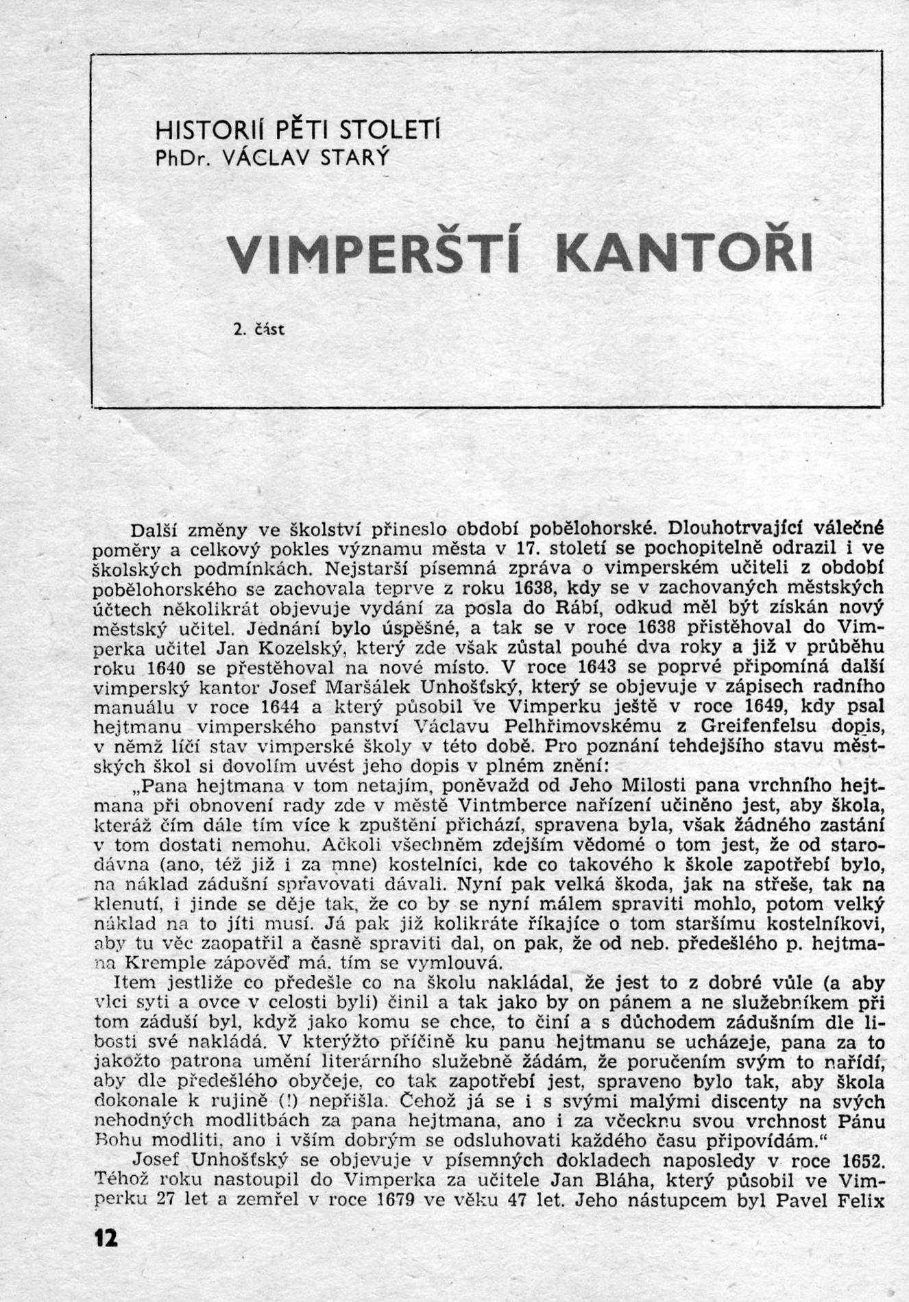 Z HISTORIE MĚSTA: Vimperští kantoři – 2. část