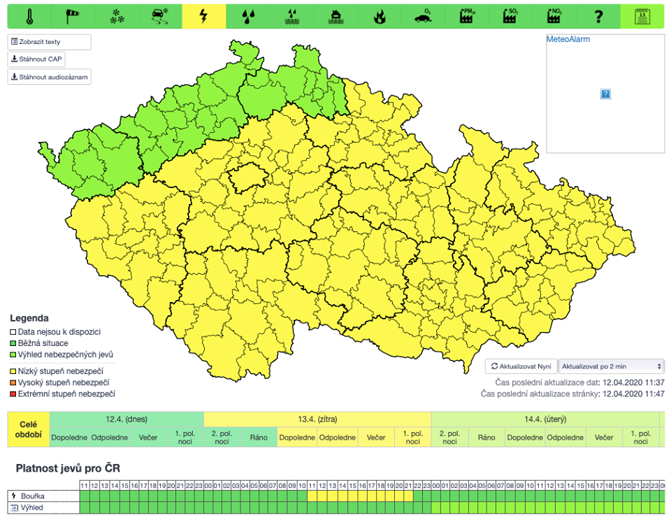 Výstraha Českého hydrometeorologického ústavu ze dne 12. dubna – silné bouřky