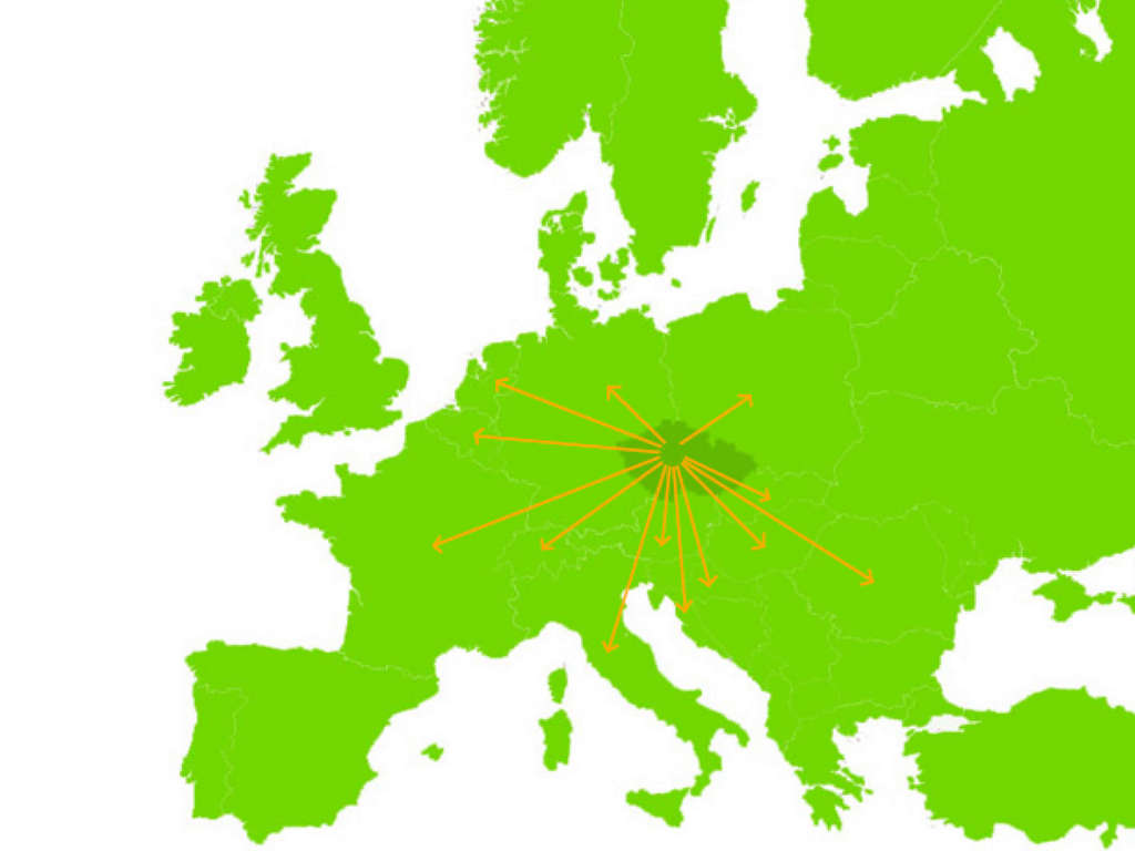 Destinace na přímém spoji: Aichach, Augsburg, Bad Oeynhausen, Baden-Baden, Bamberg, Bayreuth, Berlín, Bielefeld Brackwede, Bischofsgrün, Bochum, Bonn, Brémy, Brunswick, Cáchy, Cvikov, Dortmund, Drážďany, Düsseldorf, Engen, Erfurt, Erlangen, Essen, Frankfurt, Freiburg, Freyung, Fürth, Gera, Halle, Hamburg, Hannover, Heidelberg, Hildesheim, Hollfeld, Chemnitz, Ingolstadt, Jena, Karlsruhe, Koblenz, Kolín nad Rýnem, Kornwestheim, Lipsko, Leutkirch, Leverkusen, Magdeburg, Mohuč, Mannheim, Markdorf, Marktredwitz, Meersburg, Memmingen, Mnichov, Neckarsulm, Norimberk, Oldenburg, Osnabrück, Pasov, Pforzheim, Potsdam, Ravensburg, Rostock, Rudolstadt, Řezno, Saalfeld, Saarbrücken, Salzgitter, Schweinfurt, Stuttgart, Titisee-Neustadt, Tübingen, Überlingen, Ulm, Wangen im Allgäu, Výmar, Wolpertshausen, Würzburg
