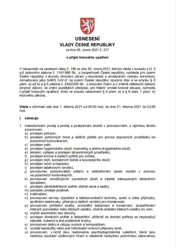 Domů POD ČAROU 4 AKTUÁLNĚ: Krizové opatření o zákazu maloobchodního prodeje a služeb s účinností od...