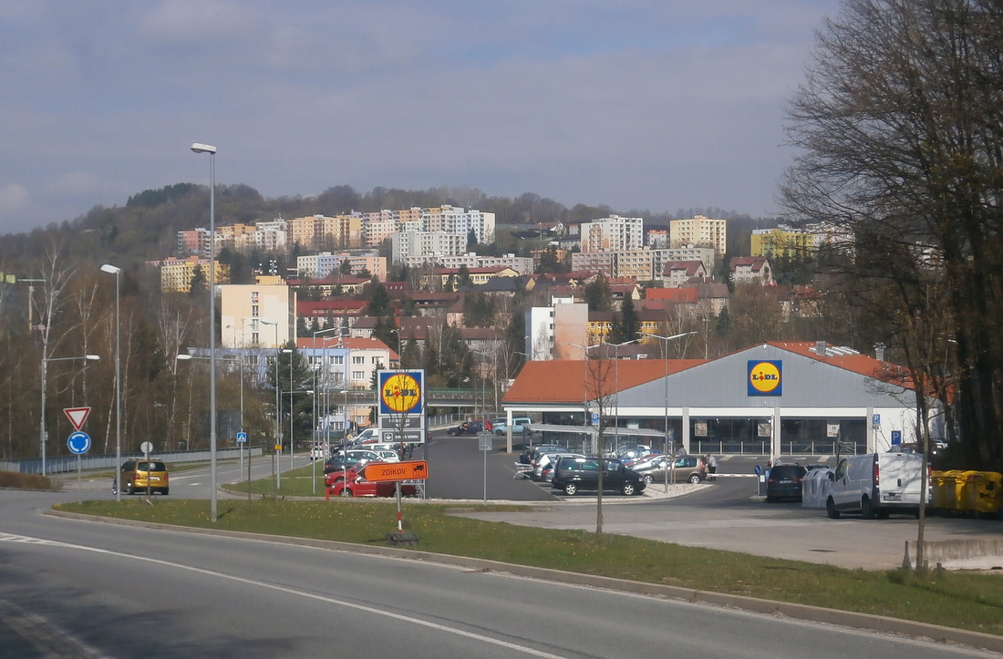 TO JE NAŠE MĚSTO: Vimperk – pohled na sídliště Míru od okružní křižovatky u Lidlu