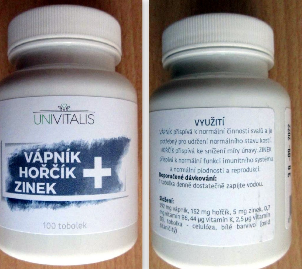 Státní zemědělská a potravinářská inspekce (SZPI) zjistila při kontrole internetového prodeje na trhu nevyhovující doplněk stravy Univitalis Vápník Hořčík Zinek+ v plastové dóze s obsahem 100 tobolek, označení data minimální trvanlivosti do 30-09-2022, výrobce: Unistry s.r.o.