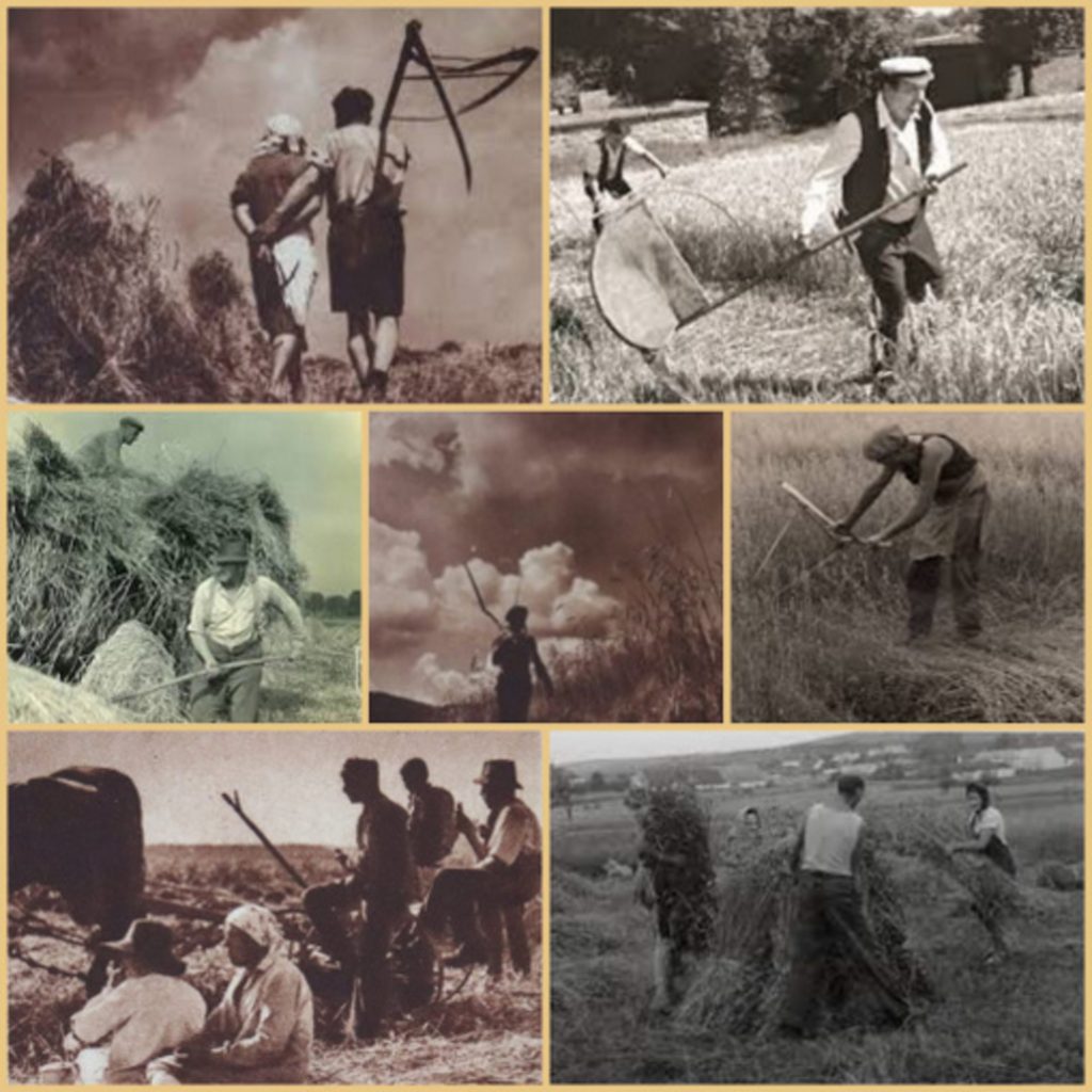 Hnědě až temně žlutě se táhnou do nekonečného obzoru vyprahlé pásy a pruhy moře obilí. Slunce jako věčný strážce úrody stojí v plné záři nad nimi a dole s tváří právě tak bronzově žlutou a opálenou jako dozrálé lány sedlák, hladící rukou klasy a starostlivým pohledem slunce. Všechno je napjaté, jako napjatí je i prostor mezi nebem a zemí, neboť za chvíli se zde rozehraje v mohutné symfonii vše, svaly, kosy, stroje, lidé i zvířata, prostě každý živý tvor, a žně začnou. Jakkoli je stejný a věčně se opakující jejich obraz, přece jen doba gigantického boje dvou světů — starého a nového — vtiskla ráz i tomuto obrazu žní a dala náplň i jeho obsahu.