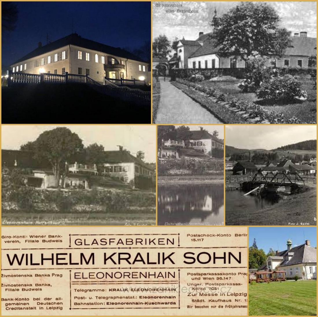 Osada Lenora (Eleonorenhain), pojmenovaná po kněžně Eleonoře ze Schwarzenbergu dosáhla největšího rozpuku za vedení zakladatele skláře a podnikatele J. Meyera, který roku 1834 zahájil sklářskou výrobu. On i další majitelé závodu (rodina Kralik von Meyerswalden) sídlili v panském domě vybudovaném v letech 1833-1834 na okraji obce, nazývaném prostě Zámeček. Byl postaven někdy ve 40. letech 19. století za Wilhelma Kralika jako sídlo jeho rodiny a byl postavený v pozdně empírovém slohu ve formě dvou budov se společným nádvořím.