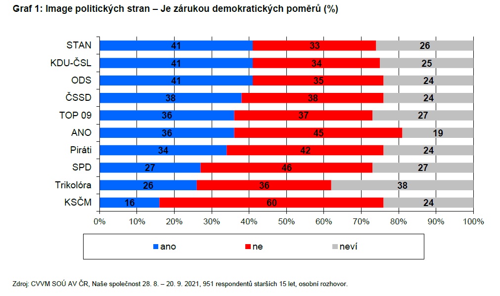 PRŮZKUM CVVM: Názory občanů na politické strany zastoupené v Poslanecké sněmovně – srpen/září 21