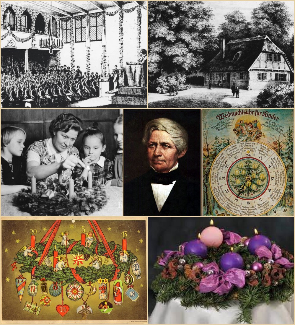 Zvyk používání adventního věnce je starý přibližně 180 let. První adventní věnec měl podobu dřevěného kola od vozu. Jeho dějiny nás vedou do nejnižších sociálních vrstev obyvatel Hamburku minulého století, přesněji do – Záchranného ústavu pro opuštěné děti. Byla to slámou pokrytá ratejna, chatrč na zapadlém okraji města. Nechtěl ukázňovat a napravovat, ale vytvořit pro děti životní prostor, ve kterém z nich mohou vyrůst dobří občané a křesťané. V Hamburku vedl nedělní školu v St. Georg jako teolog a učitel, a tak se setkal se životem ve slumech hanzovního města. Na pomoc dětem – k jejich záchraně – v roce 1833 ve svých 25 letech založil Rauhe Haus na „záchranu zanedbaných a těžko vychovatelných dětí“.