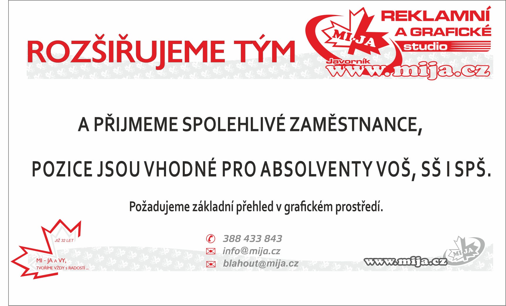 BEZPLATNÁ INZERCE: Nabídka zaměstnání ve firmě s třicetiletou tradicí