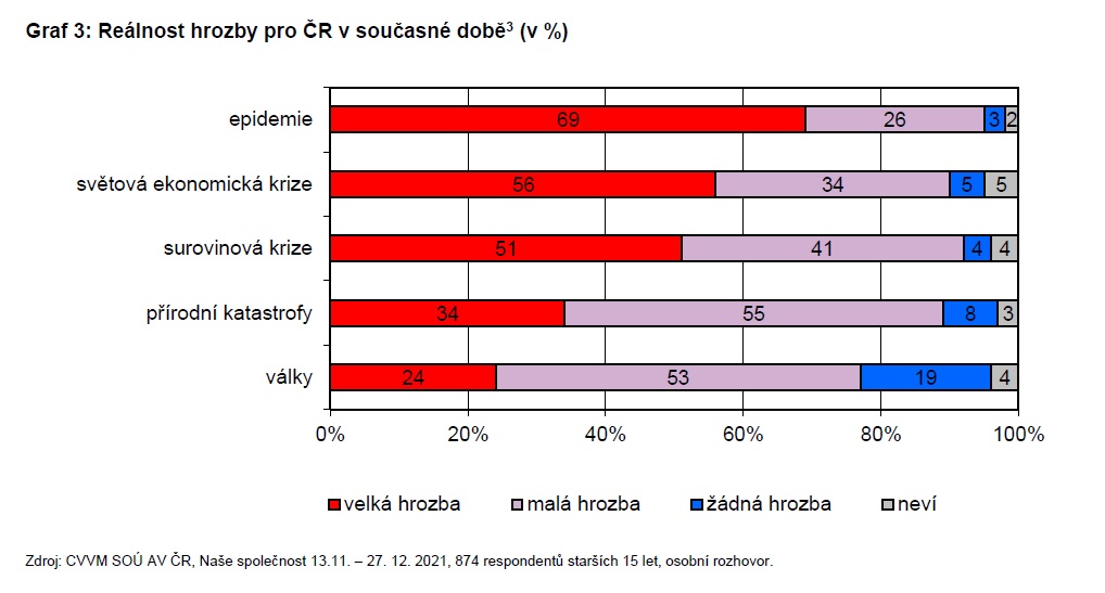 PRŮZKUM CVVM: Veřejnost o svých obavách z různých hrozeb a o očekáváních do budoucna – 11 /12 2021