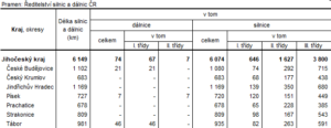 Tab. 1 Délka silnic a dálnic v Jihočeském kraji a jeho okresech k 1. 1. 2022