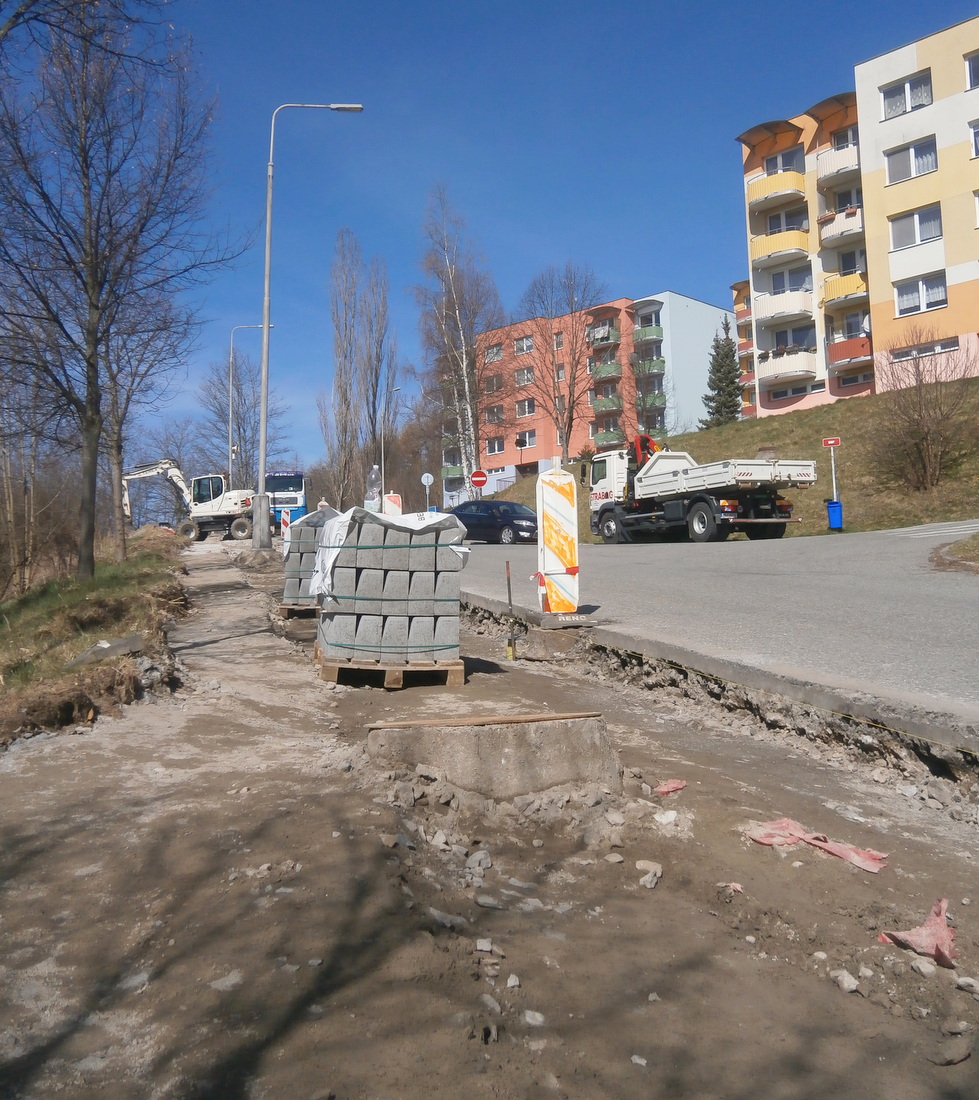 NAŠE MĚSTO VIMPERK: Na stavbě – nová parkovací stání v Mírové ulici v sídlišti Míru (12. dubna 2022)