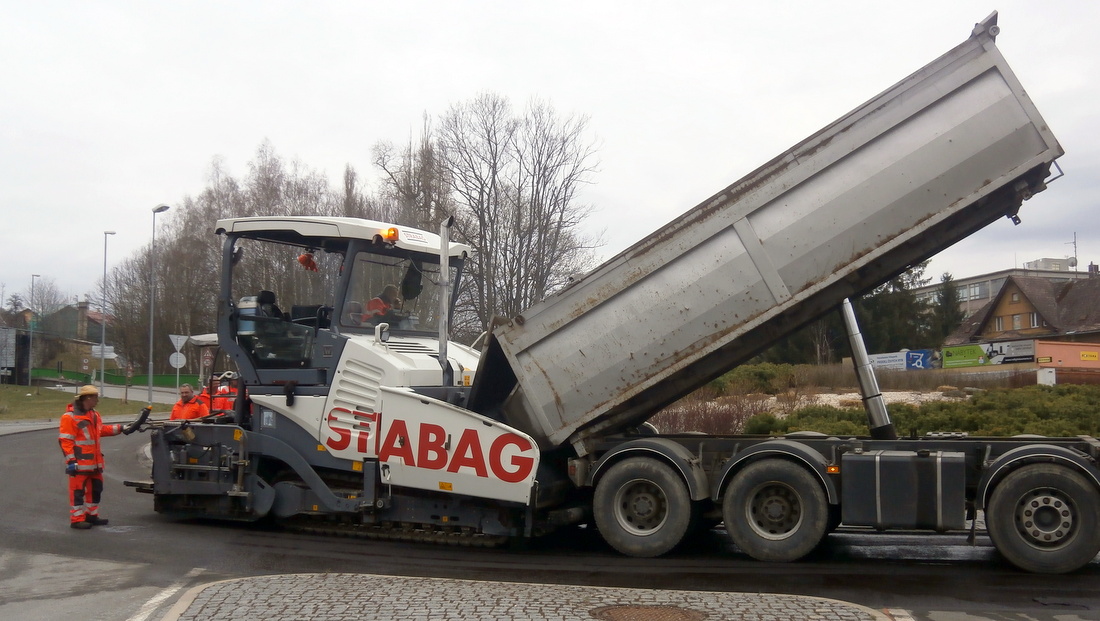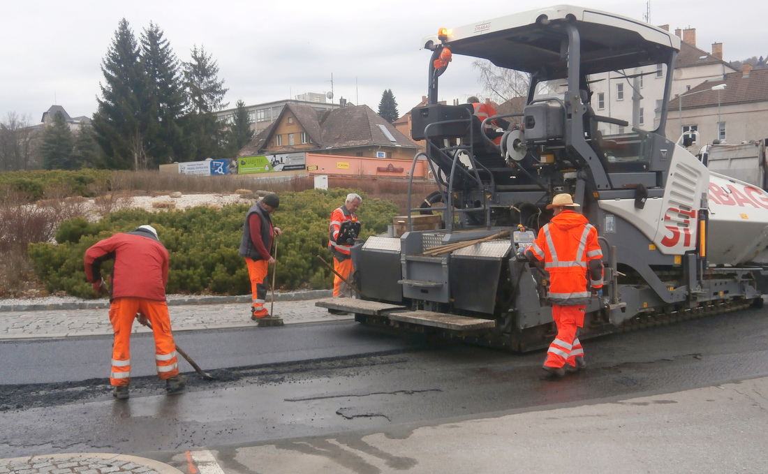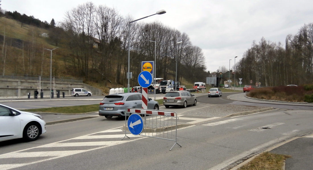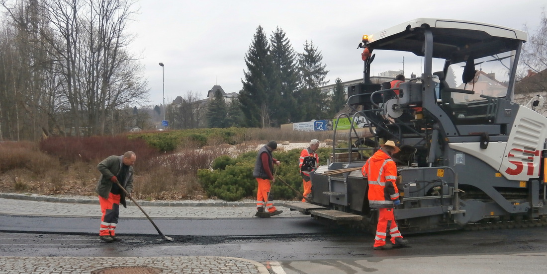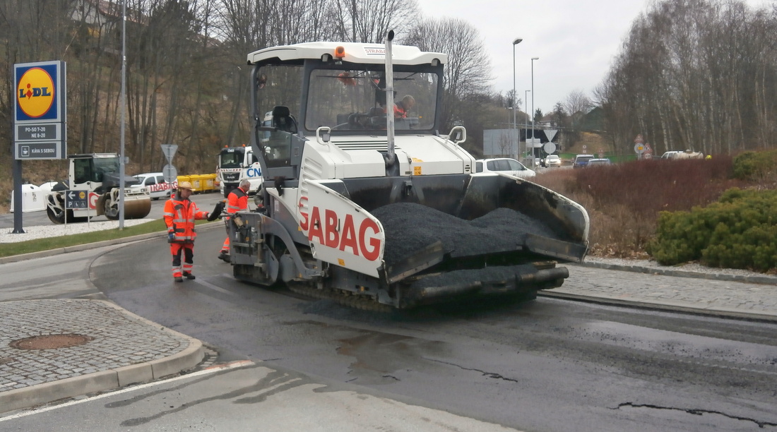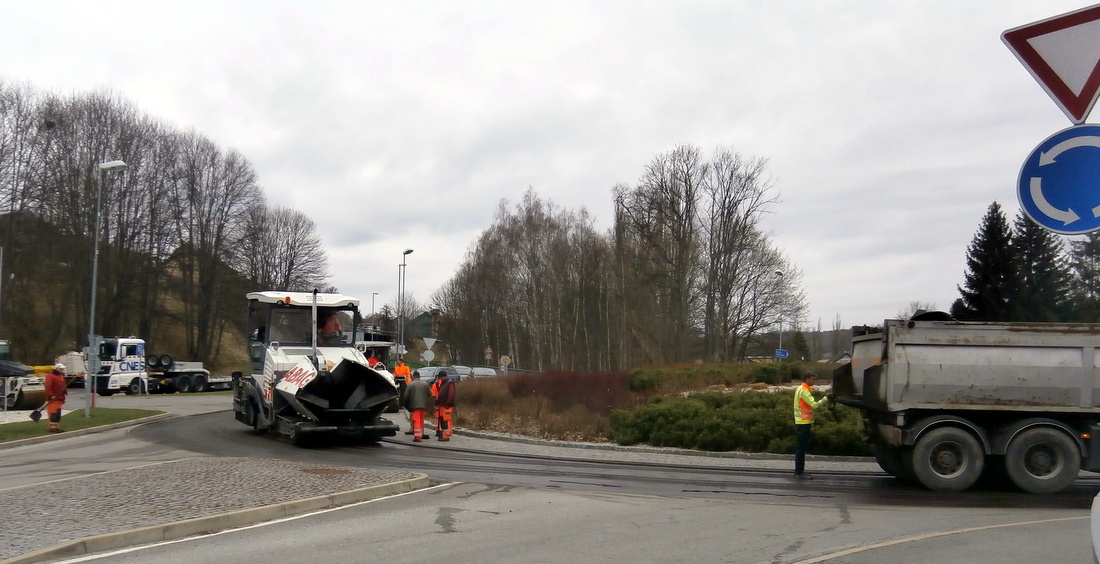 NAŠE MĚSTO VIMPERK: Na stavbě – nový povrch vozovky pro kruhovou křižovatku u Lidlu (18. dubna 2022)