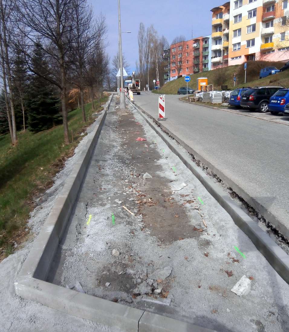 NAŠE MĚSTO VIMPERK: Na stavbě – nová parkovací stání v Mírové ulici v sídlišti Míru (21. dubna 2022)