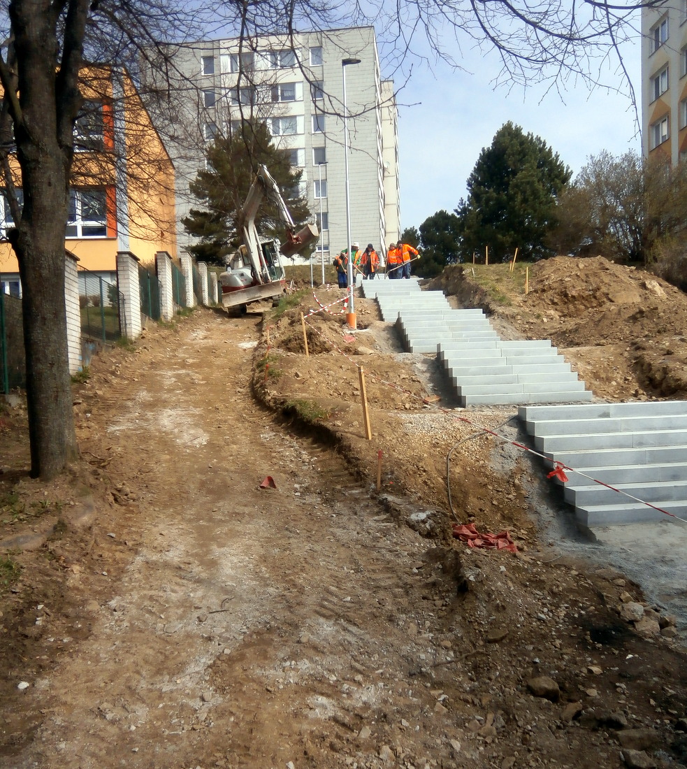 NAŠE MĚSTO VIMPERK: Na stavbě – nové chodníky a schody pro sídliště Míru (21. dubna 2022)