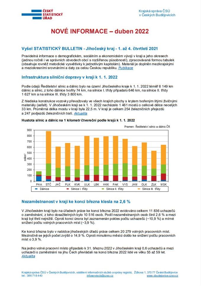 ČESKÝ STATISTICKÝ ÚŘAD: Nové informace – duben 2022