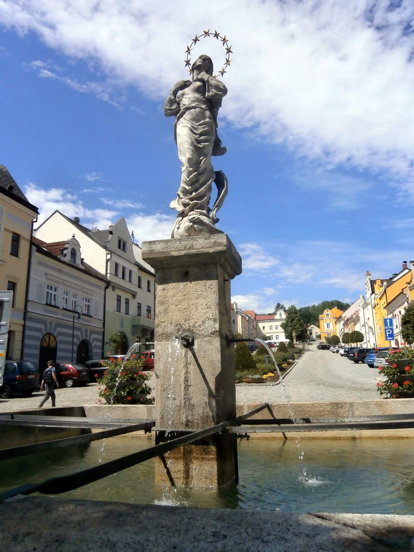 NAŠE MĚSTO VIMPERK: Náměstí Svobody – dolní kašna se sochou Panny Marie