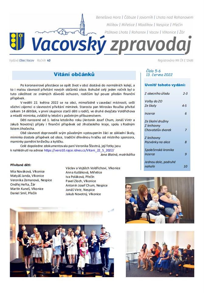 PŘEČTĚTE SI U NÁS: Vacovský zpravodaj – č. 5-6/2022