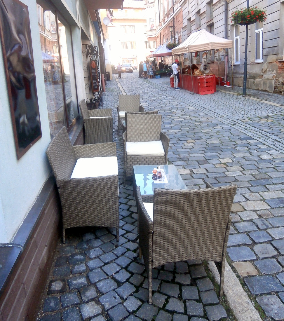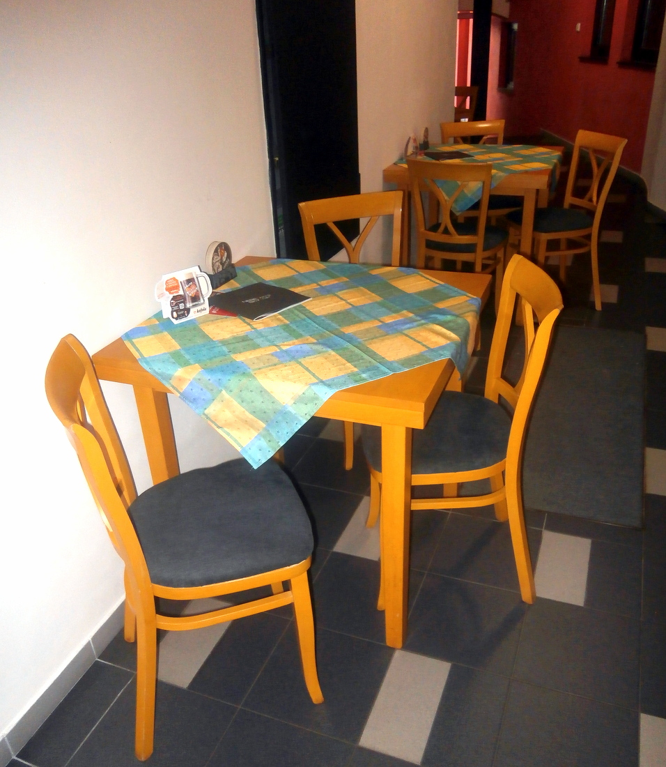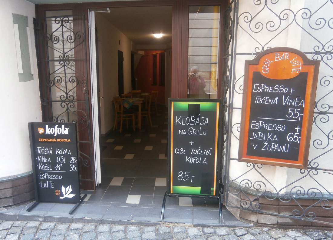 Dopoledne v Rožmberské ulici: Téměř vše už je připraveno k zítřejšímu otevření Grill baru Lotte. Nabídne i posezení s občerstvením u venkovních stolků.