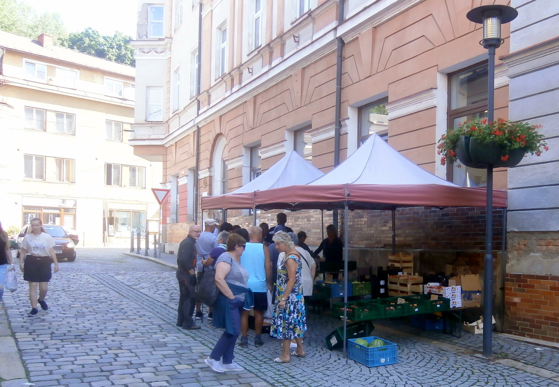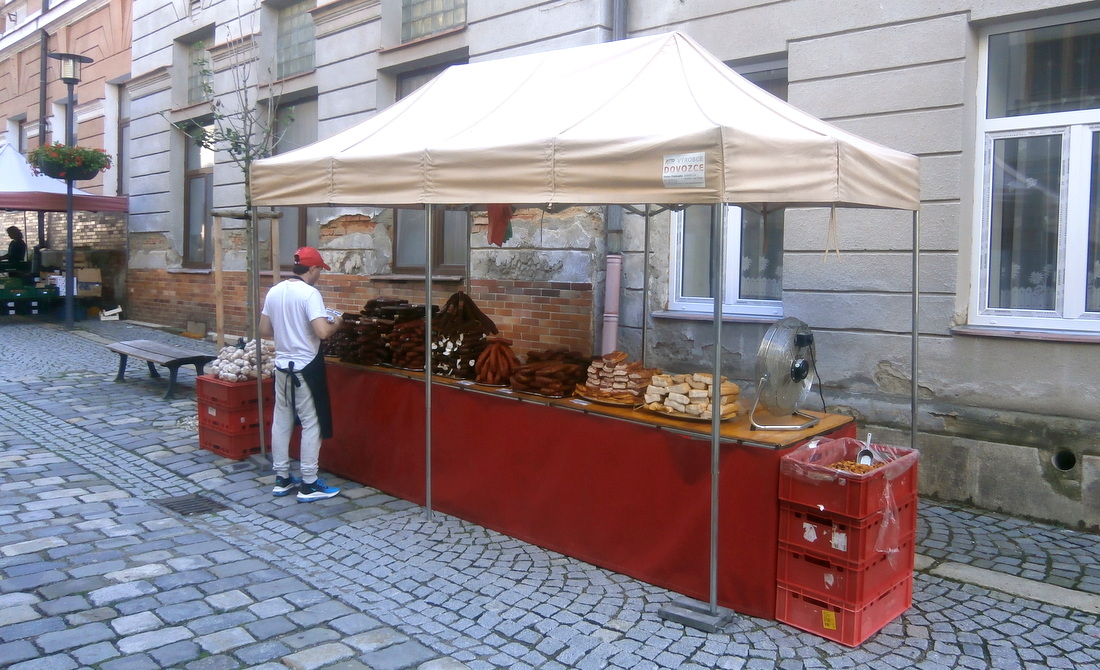 Jednou za čtrnáct dní ve čtvrtek přijíždí do města prodejce se slovenskými uzeninami.