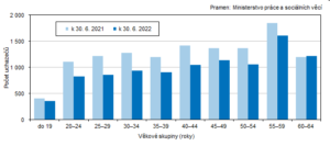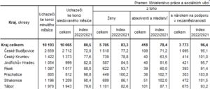 Ze statistických údajů vyplývá, že se v červnu 2022 na jihočeských úřadech práce nově zaregistrovalo 1 720 osob a 1 848 osobám byla evidence ukončena, popřípadě z ní byli vyřazeni. Celkem 1 259 uchazečů našlo nové zaměstnání, z toho 45,4 % získalo nové zaměstnání díky úřadům práce.