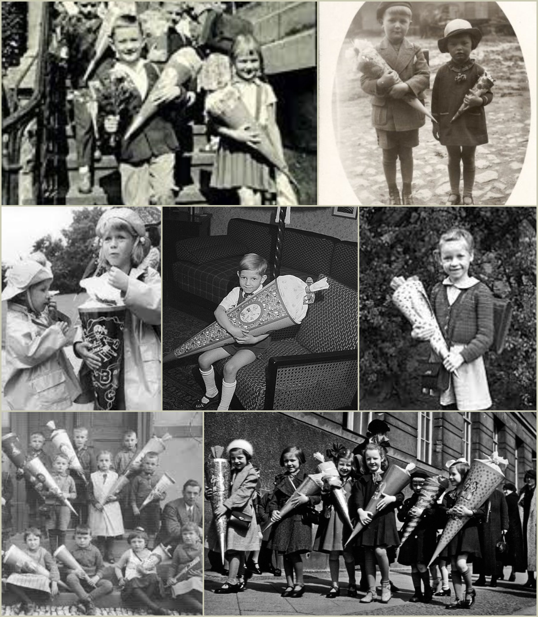 Dětem se vyprávělo, že na stromě zvaném kornoutovník v zahradě pana učitele rostou cukrové kornouty a když už jsou děti dost veliké, tak je čas jít do školy. Dodnes v některých spolkových zemích dostávají děti kornouty ze stromu, třeba v parku při školní slavnosti na přivítání od pana učitele. Ty jim buď připraví škola, a všechny děti mají kornouty stejné, nebo je rodiče přinesou potají do školy a učitel je zavěsí. V jiných spolkových zemích je dostanou děti od rodičů ráno a přinesou si je do školy, kde si je rozbalí, nebo nerozbalí, to závisí na škole.