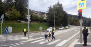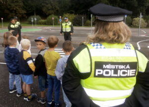 NAŠE MĚSTO VIMPERK: Strážníci městské policie procvičili s prvňáky ze školy v parku, jak se chovat v silničním provozu