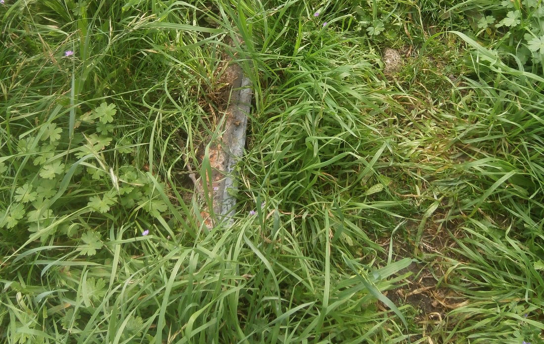 Skryté nebezpečí čeká na lidi, kteří procházejí nedávno nově zpřístupněnou stezkou podél vimperských hradeb. V jednom místě tam ze země vyčuhuje pořádný kus plechu maskovaný vzrostlou trávou (pro účely focení jsme ji odhrnuli).