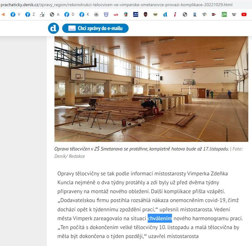 ad Rekonstrukci tělocvičen ve vimperské Smetanovce provází komplikace – Prachatický deník