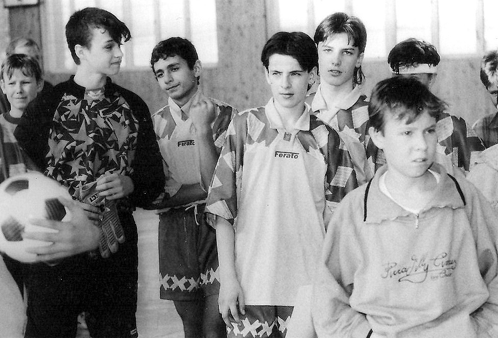 Účastníci turnaje v sálové kopané, který se hrál v tělocvičně Základní školy Smetanova.
