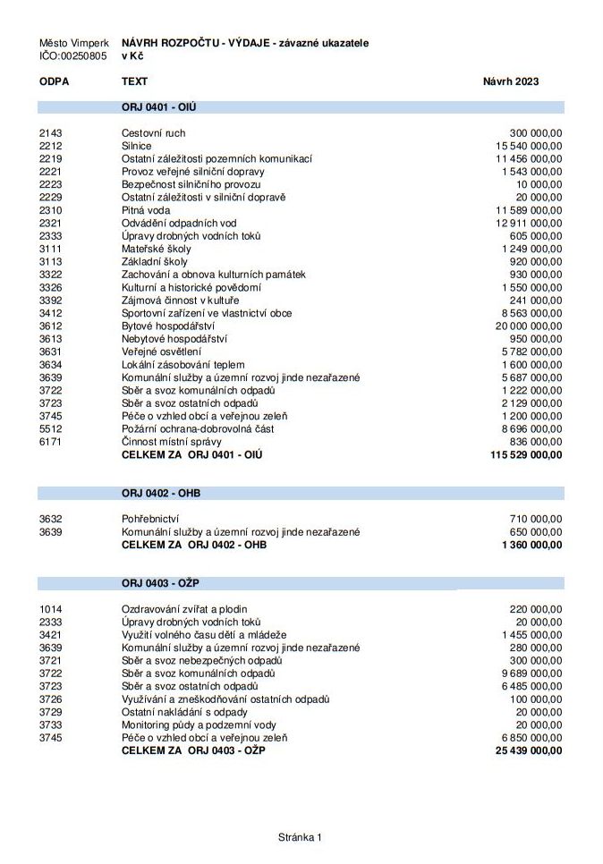 NAŠE MĚSTO VIMPERK: Dokument – Návrh rozpočtu na rok 2023 (pro jednání zastupitelstva 12. prosince 2022)