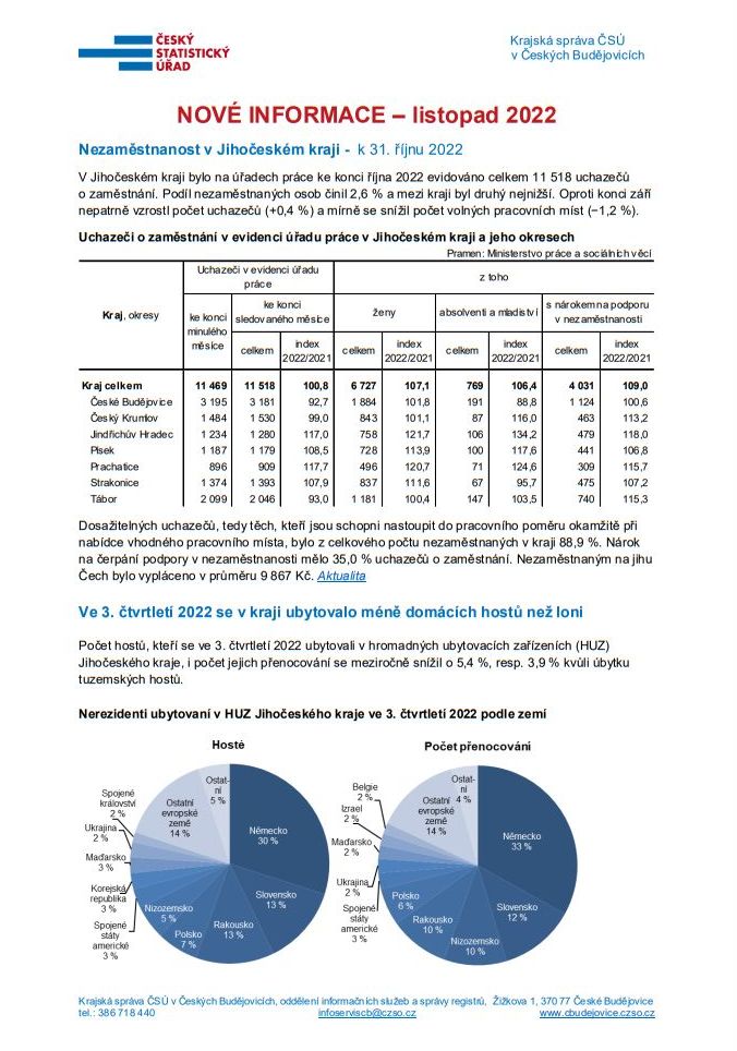 ŘEČÍ ČÍSEL: Přehled nových informací krajských statistiků v listopadu 2022