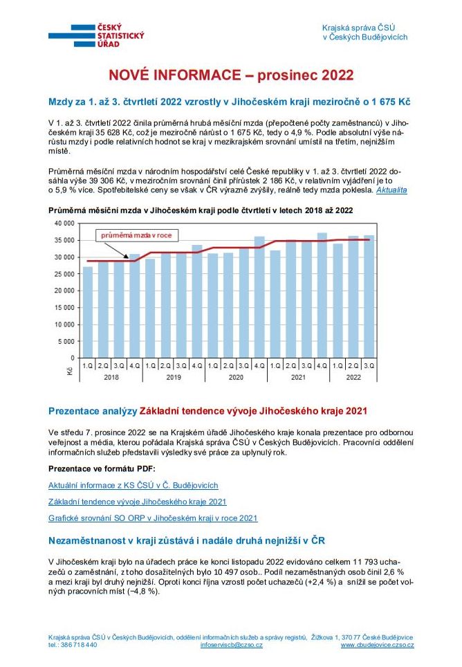 ŘEČÍ ČÍSEL: Přehled nových informací krajských statistiků v prosinci 2022