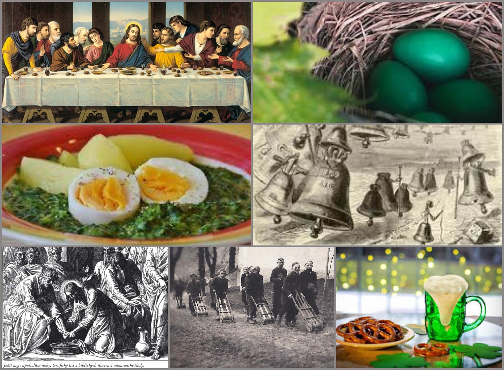 Na Zelený čtvrtek večer vstupujeme do nejdůležitější části liturgického roku, do velikonočního tridua které začíná večerní mši na Zelený čtvrtek, pokračuje na Velký pátek, vrcholí na Bílou sobotu o velikonoční vigilii a Neděli zmrtvýchvstání Páně. Je to oslava velikonočního tajemství Kristova, jeho utrpení a vzkříšení. Při zpěvu Gloria večerní mše zvoní zvony, které se pak na několik dní odmlčí. Říká se, že odletěly do Říma. Když zazní zvony naposledy, zacinkejte si penězi, aby se vás držely celý rok.