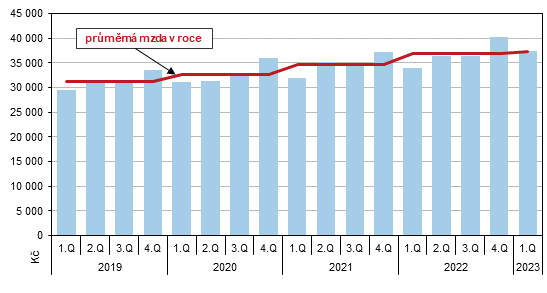 Průměrná měsíční mzda v národním hospodářství celé České republiky v 1. čtvrtletí 2023 měla hodnotu 41 265 Kč, což je o 3 265 Kč více než ve stejném období minulého roku. Ve srovnání s 1. čtvrtletím 2022 vzrostla průměrná mzda v ČR nominálně o 8,6 %. Spotřebitelské ceny se však v ČR za uvedené období zvýšily o 16,4 %, a proto mzda reálně klesla o 6,7 %.