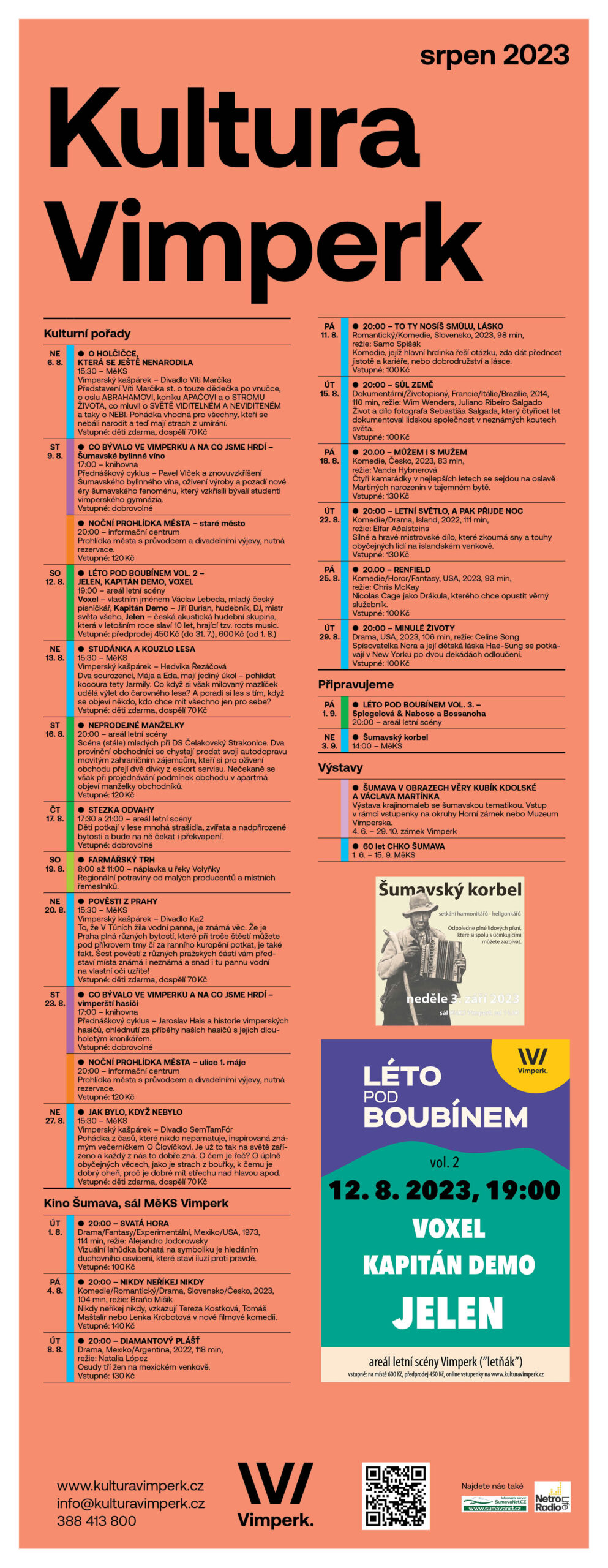 NAŠE MĚSTO VIMPERK: Kulturní pořady, kino a výstavy – v srpnu 2023