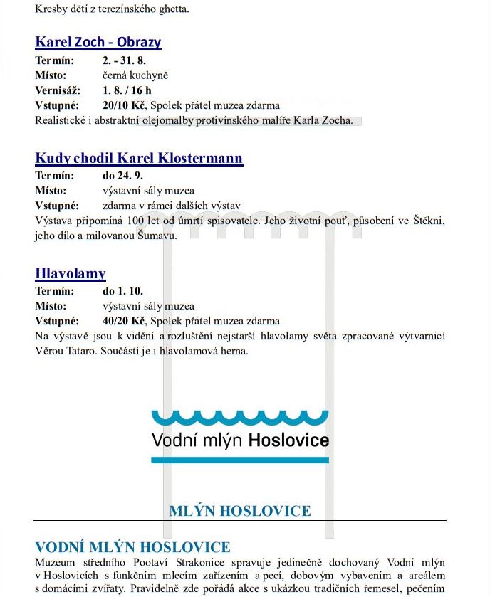 JIŽNÍ ČECHY: Programová nabídka Muzea středního Pootaví Strakonice – 8/23