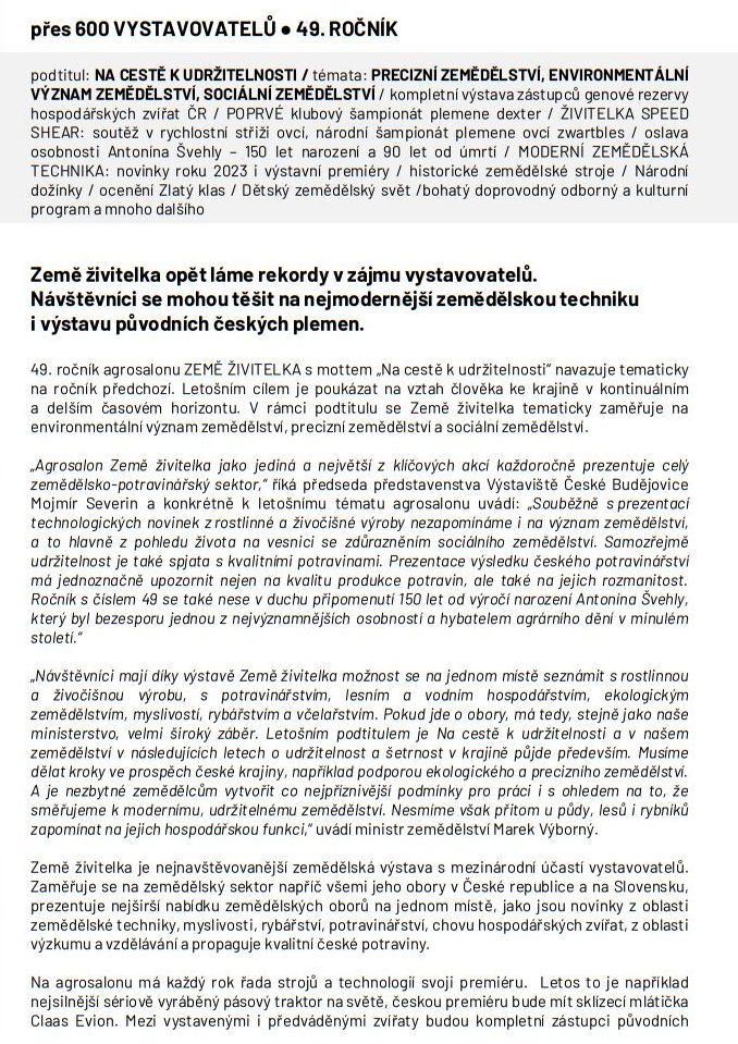 JIŽNÍ ČECHY: 49. ročník Země živitelky začíná v Českých Budějovicích 24.8.