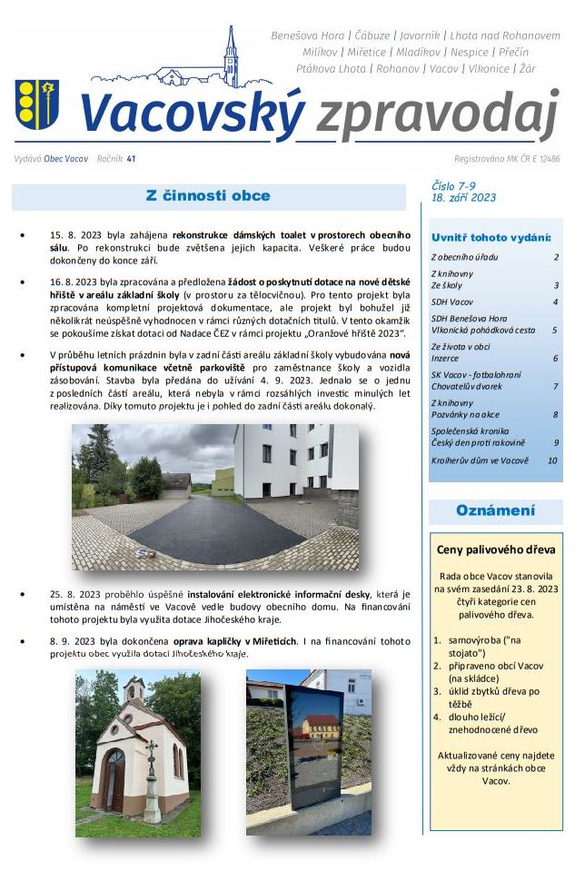 PŘEČTĚTE SI U NÁS: Vacovský zpravodaj – č. 7-9/2023