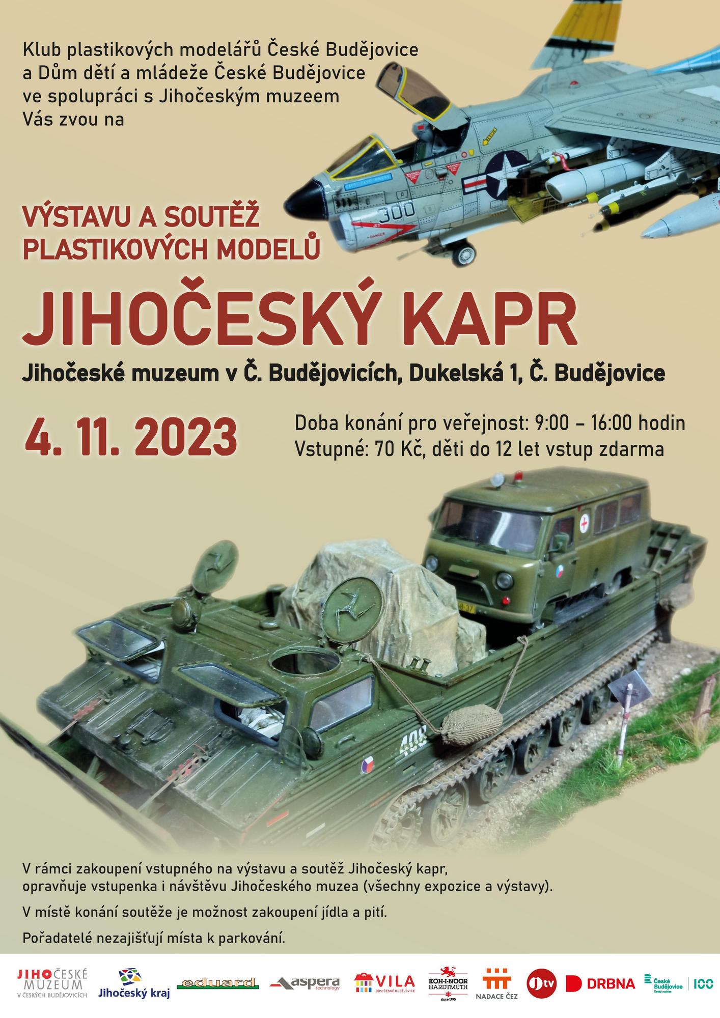 Odkazy · Web Jihočeského muzea: https://www.muzeumcb.cz/program/vystavy/vystava-a-soutez-plastikovych-modelu-jihocesky-kapr-2023.html