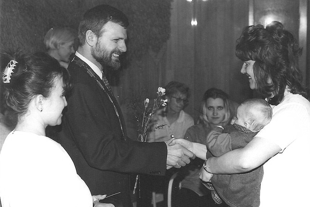 Starosta města Miroslav Kvasnička vítá nové vimperské občánky: