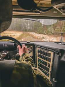 Na Boleticích s nimi trénovali jízdu v terénu. Jezdili po nezpevněných cestách, v bahně a ve sněhu. Učili se, jak překonávat terénní nerovnosti a překážky. Pomáhala jim v tom zapnutá redukce převodového stupně, které vojáci slangově říkají želva. „Vozidlo jede pomaleji, ale je pružnější a má větší sílu. Řidiči pomůže při rozjezdech, aby s vozidlem vyjel náročný terén nebo když se potřebuje dostat z bahna, louže a podobně,“ vysvětlil laicky rotmistr J. Š., který řídil výcvik řidičů.